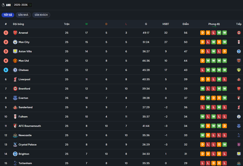 Sự liền mạch này giúp bảng xếp hạng không còn là thông tin tĩnh, mà trở thành điểm xuất phát cho quá trình phân tích sâu hơn. Với những người theo dõi Ngoại hạng Anh một cách nghiêm túc, đây là trải nghiệm rất đáng giá.