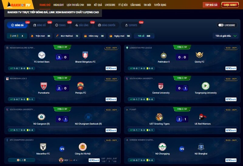 Không còn cảnh phải tìm từng link lẻ tẻ, nhảy từ trang này sang trang khác. Rakhoi mang đến trải nghiệm xem trực tiếp tập trung, nơi hầu như tất cả giải đấu đều có mặt: