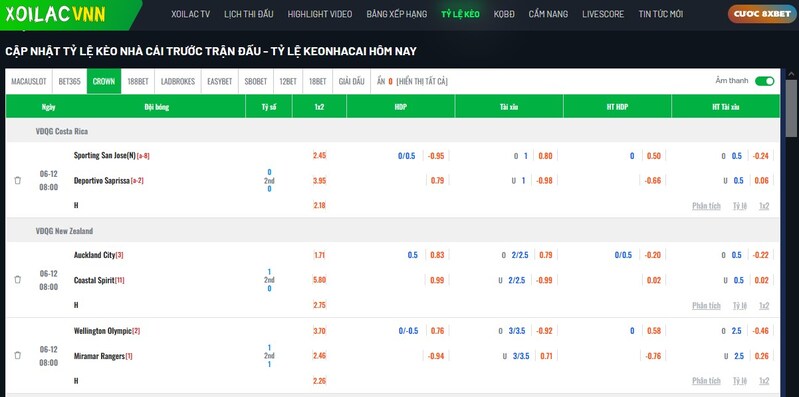 - Tỷ lệ kèo – dữ liệu đầy đủ